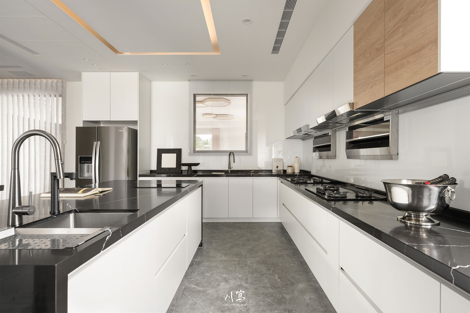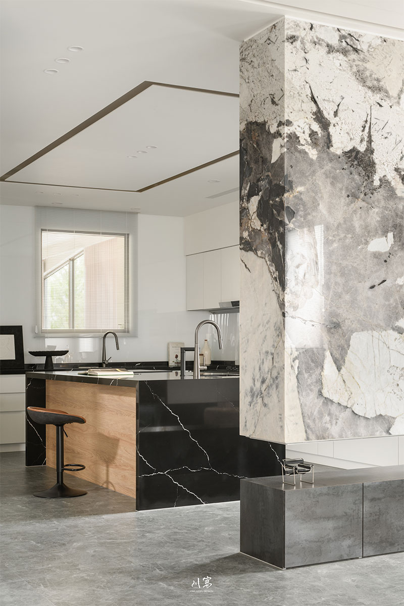 廚房採開放式設計,搭配寬敞的中島檯面,不僅提升料理動線,也讓備餐、交流更自在,創造共享的美味時光。